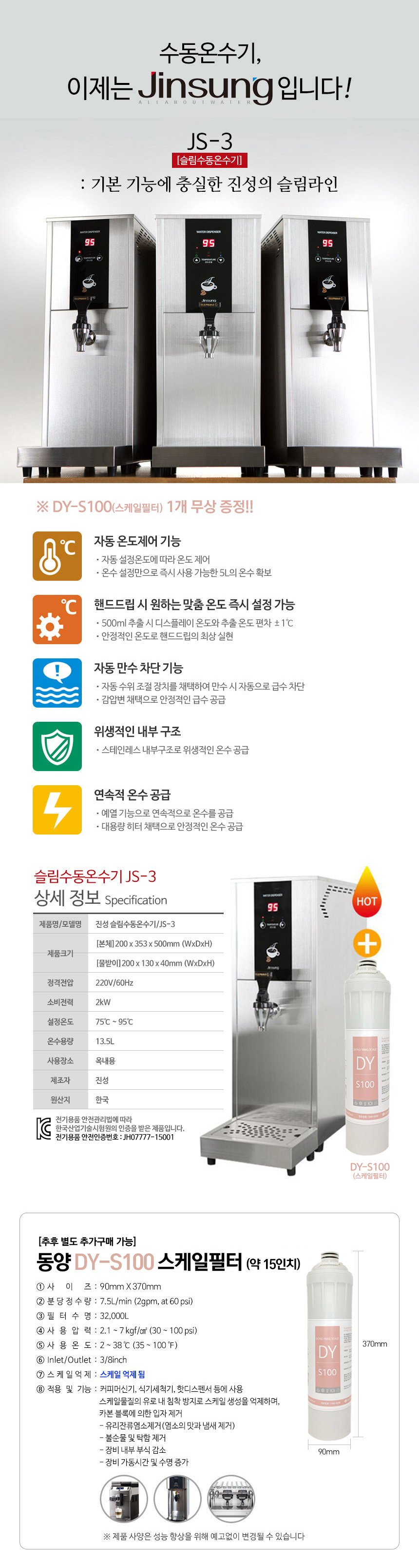 제품 사양 (용량, 소비전력 등)