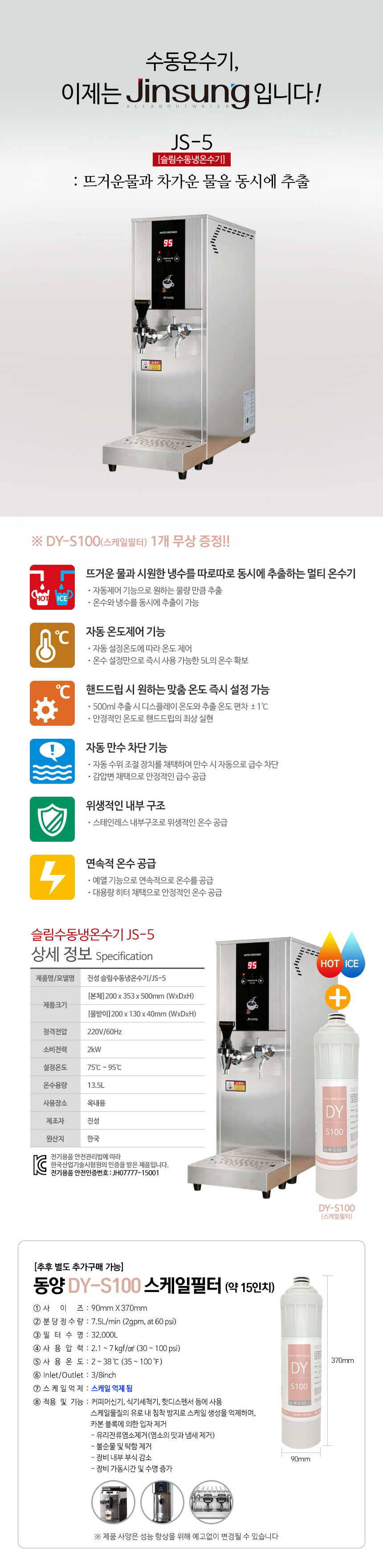 제품 사양 (용량, 소비전력 등)