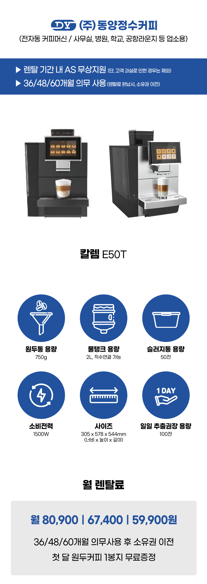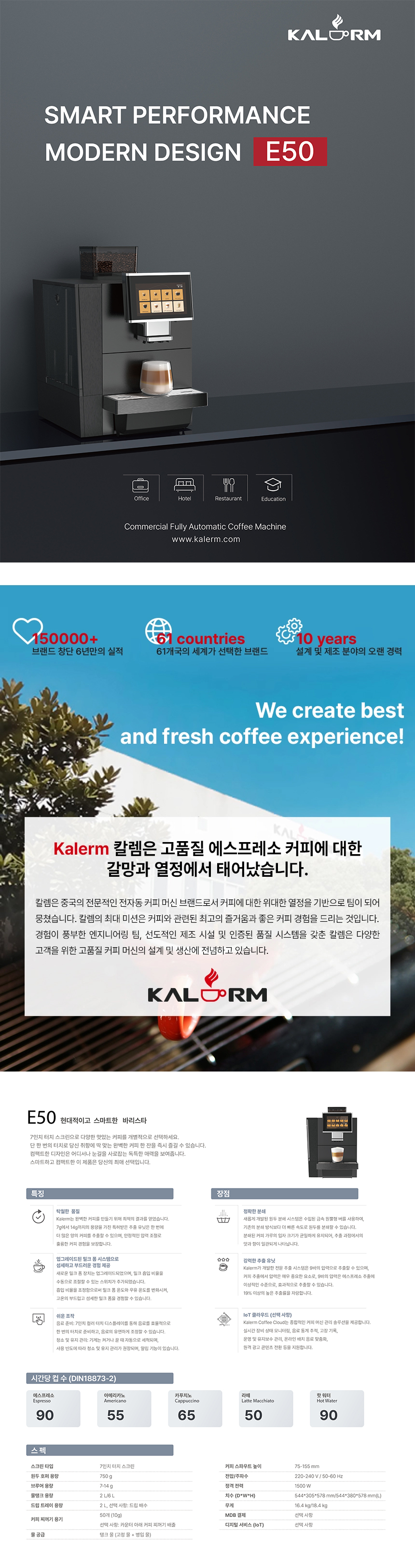 칼렘 전자동 에스프레소머신 커피머신 렌탈 E50T