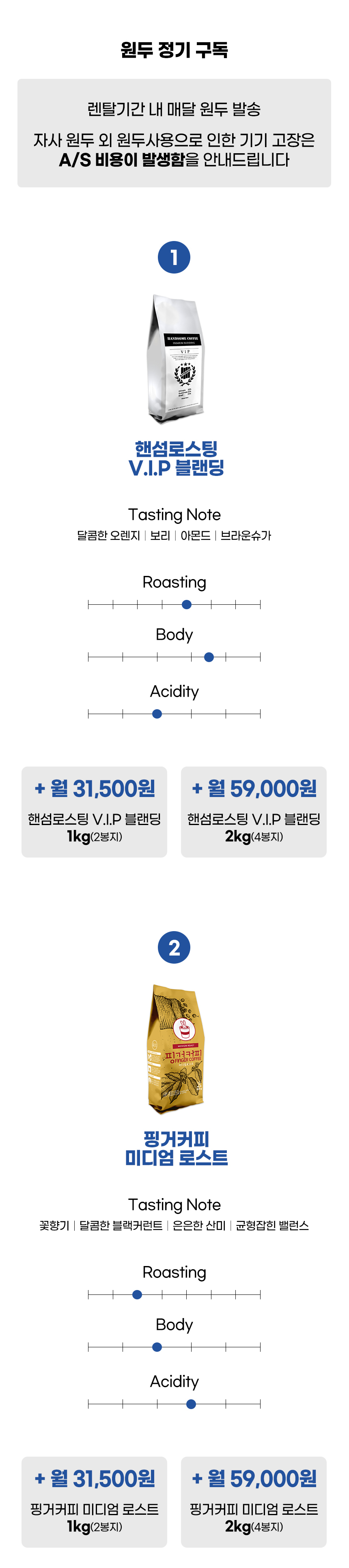 옵션1. 핸섬로스팅 V.I.P 블랜딩 : 1kg(+31,500원) / 2kg(+59,000원)