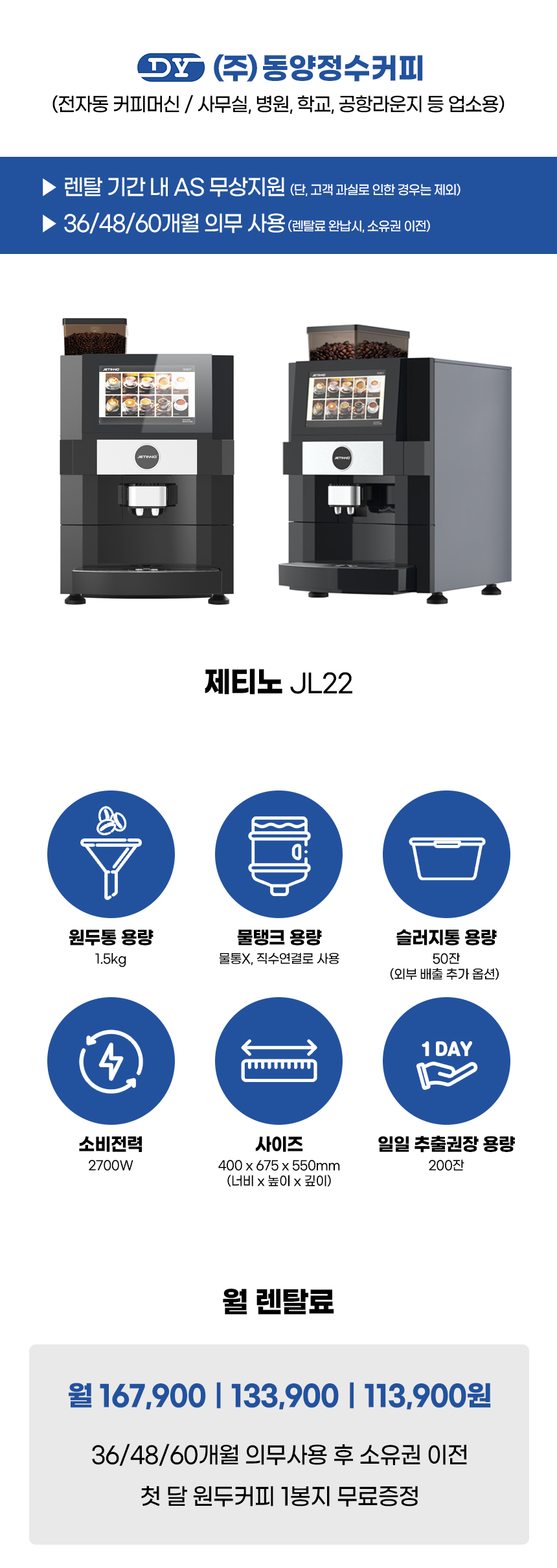제티노 전자동 에스프레소머신 커피머신 렌탈 JL22