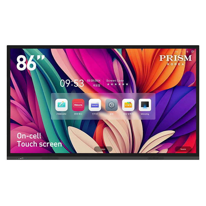 프리즘코리아 86인치 On-Cell 학교 학원 회의실 벽걸이 스탠드 스마트칠판 전자칠판 PR86M-WSG